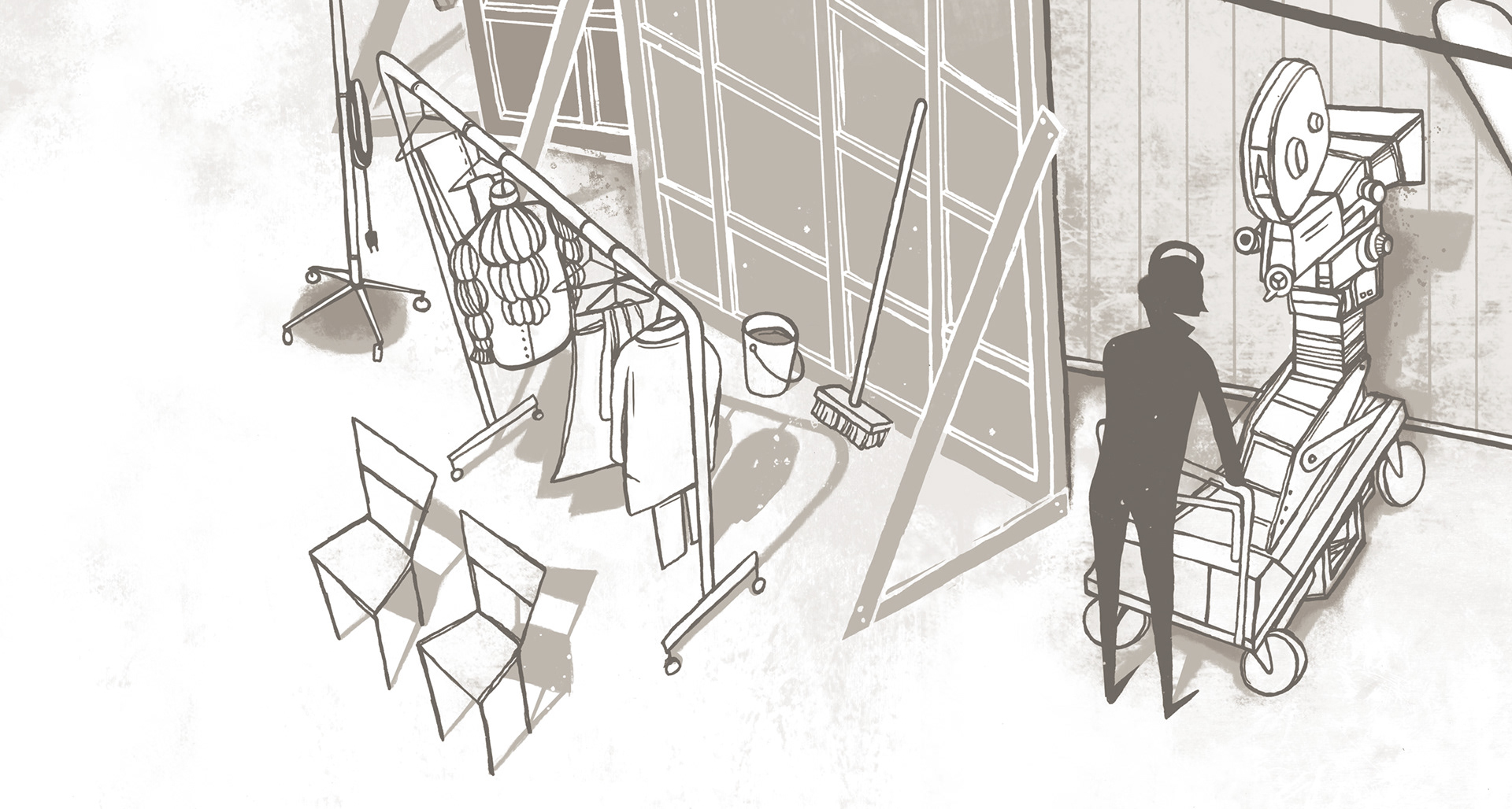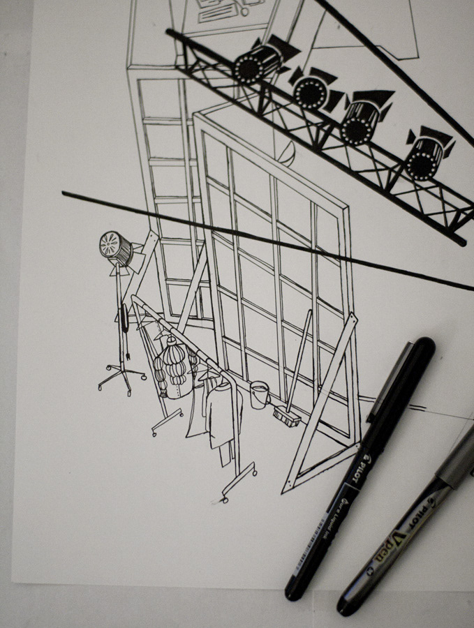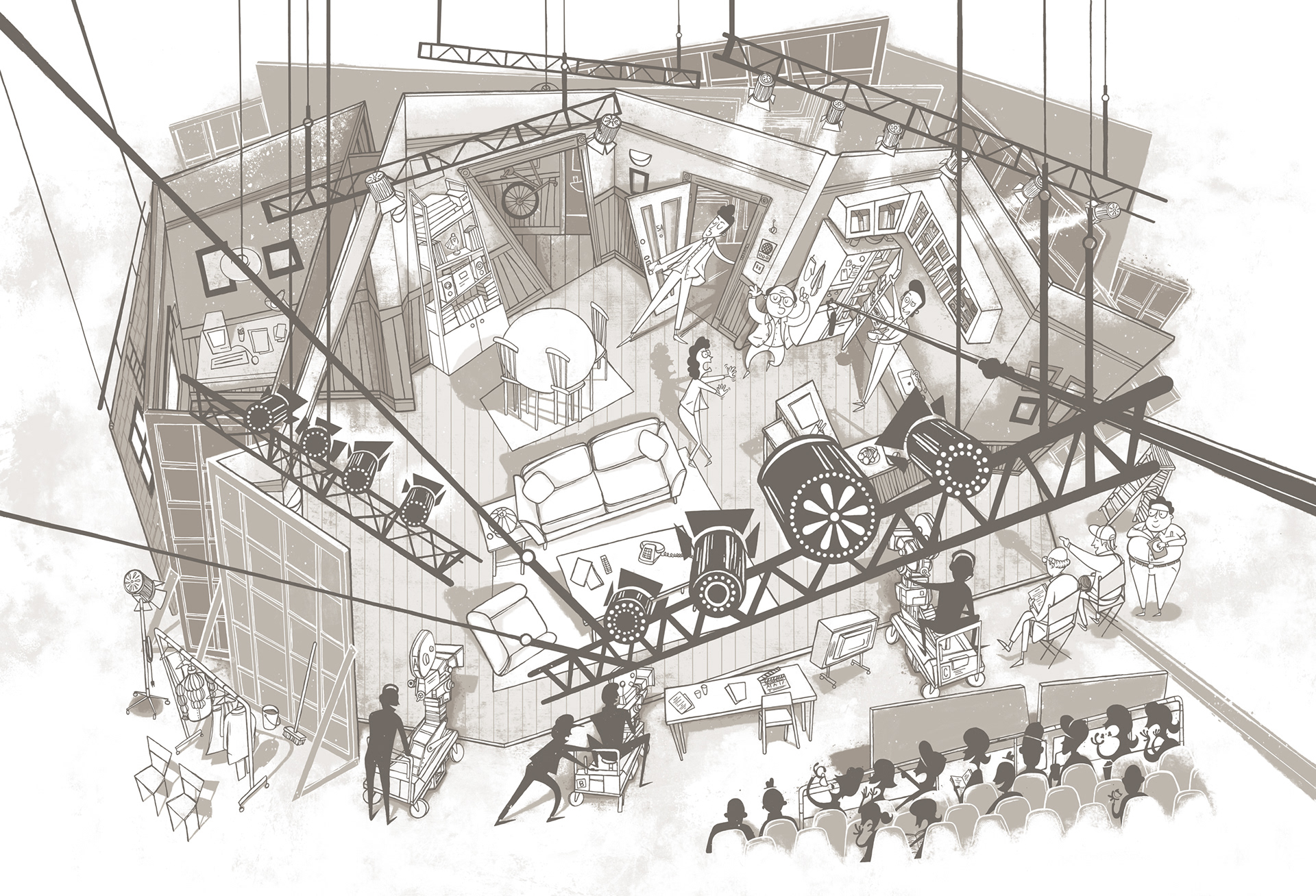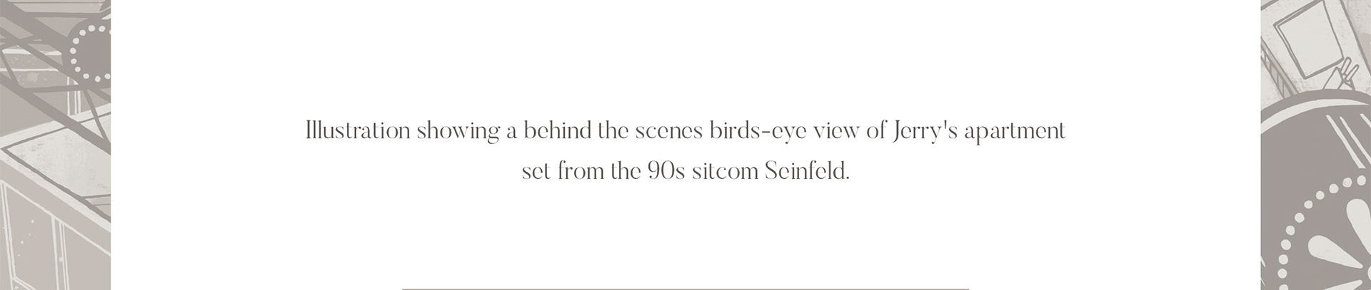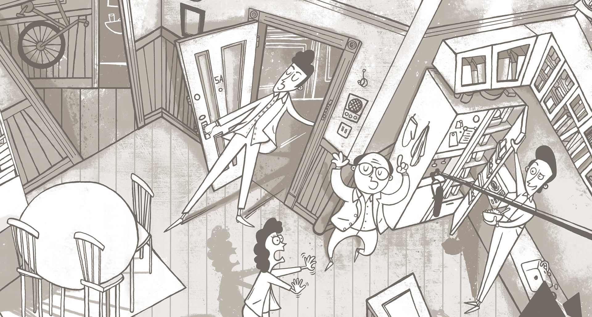 Illustration showing a birds eye view of the Jerry's apartment set from the Seinfeld tv show.
